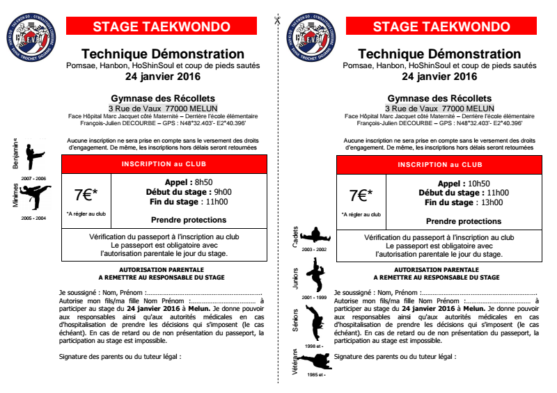 Au programme : Pomsae, Hanbon, HoShinSoul et coup de pieds sautés.