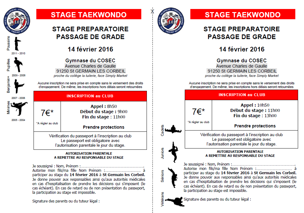 L'Ecole de la Vague Bleue organise le un stage le 14 février 2016 à St Germain les corbeil accessible aux ceintures blanches.