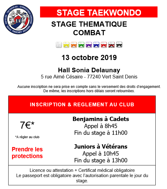 Dimanche 13 octobre 2019, l'AEVB organise un stage combat.