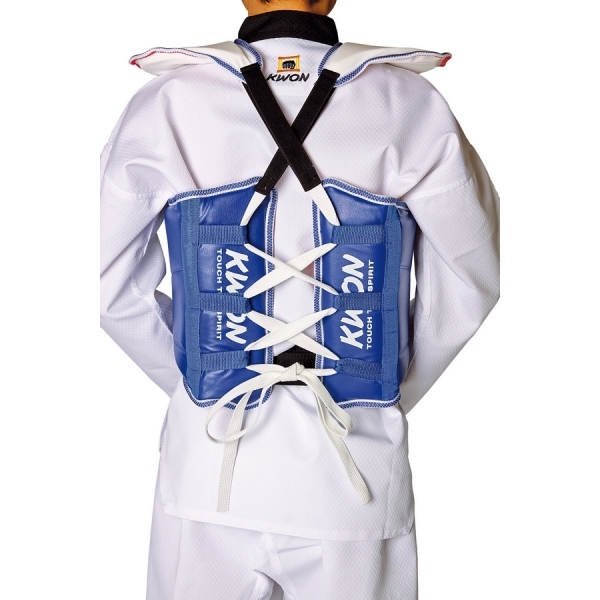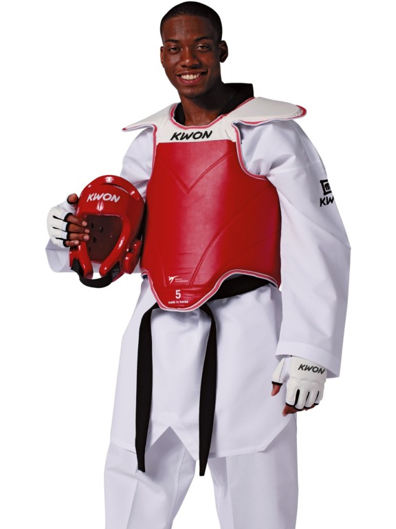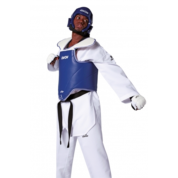 Le plastron est le plus perfectionné de la marque KWON. Son système de fermeture par laçage arrière permet un ajustement optimal. Sa coupe apporte un confort d'utilisation inégalé. Réversible bleu et rouge. Origine coréenne. !
